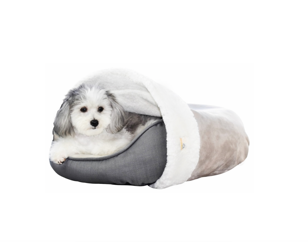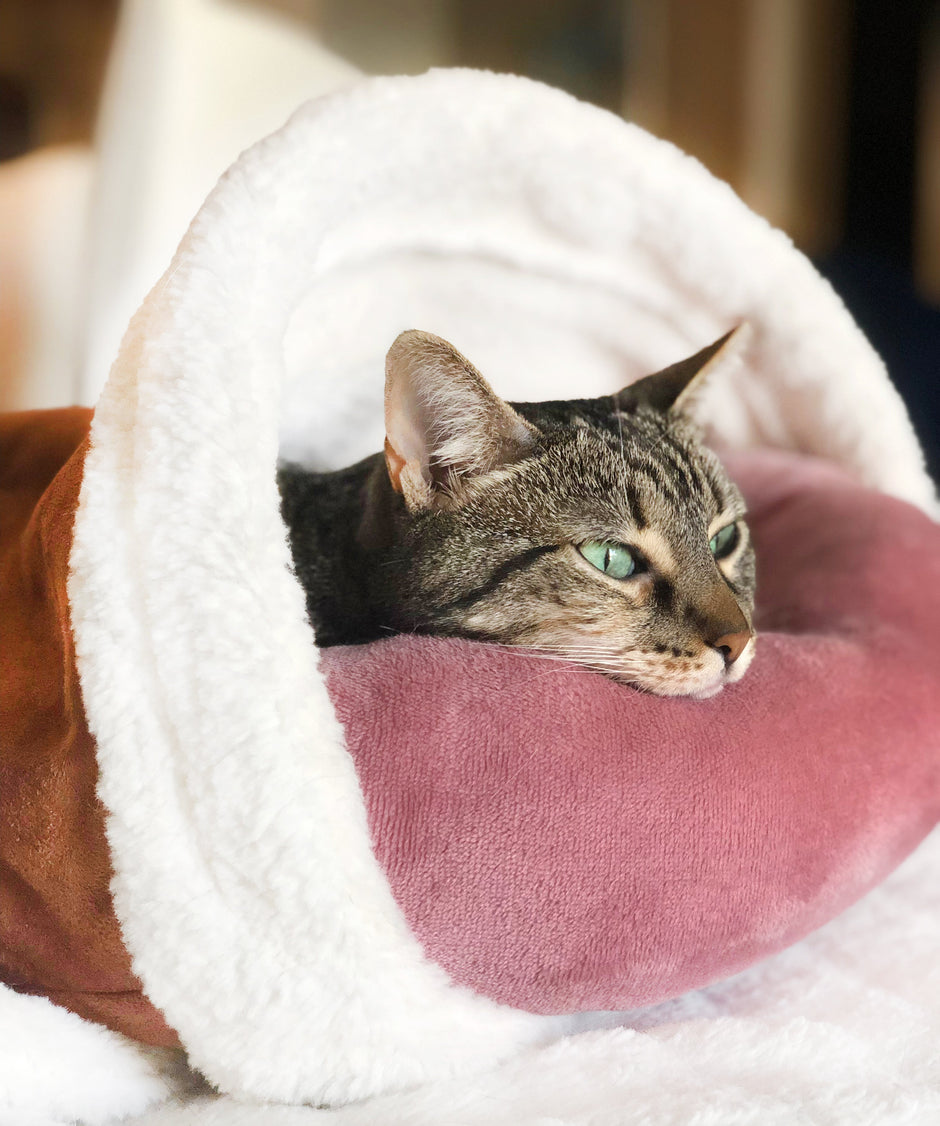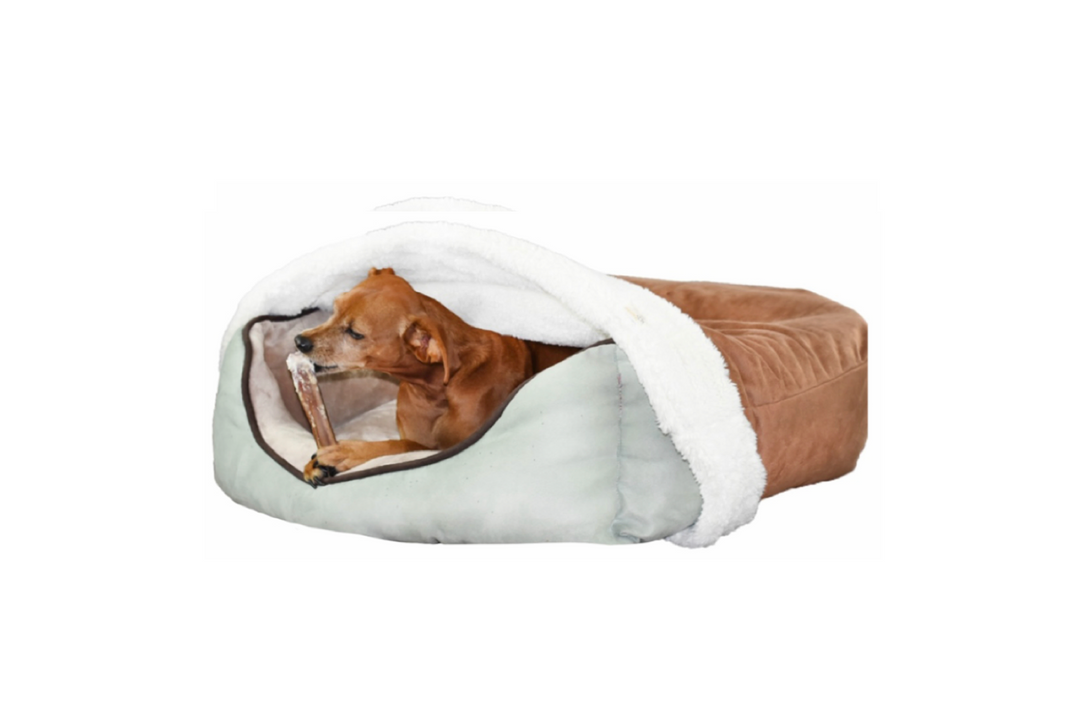 🐶 USE BEDHUG INDEPENDENTLY - Toss your bed aside, and simply wrap the BedHug into a cone-like shape to create the ultimate cave for your pet. For extra comfort, choose the next size up; the extra fabric at the back can be folded on itself to create an even softer base. The tighter you wrap the cone, the less space there is for your pet. Adjust it to your pet's liking until the desired level of coziness is achieved.