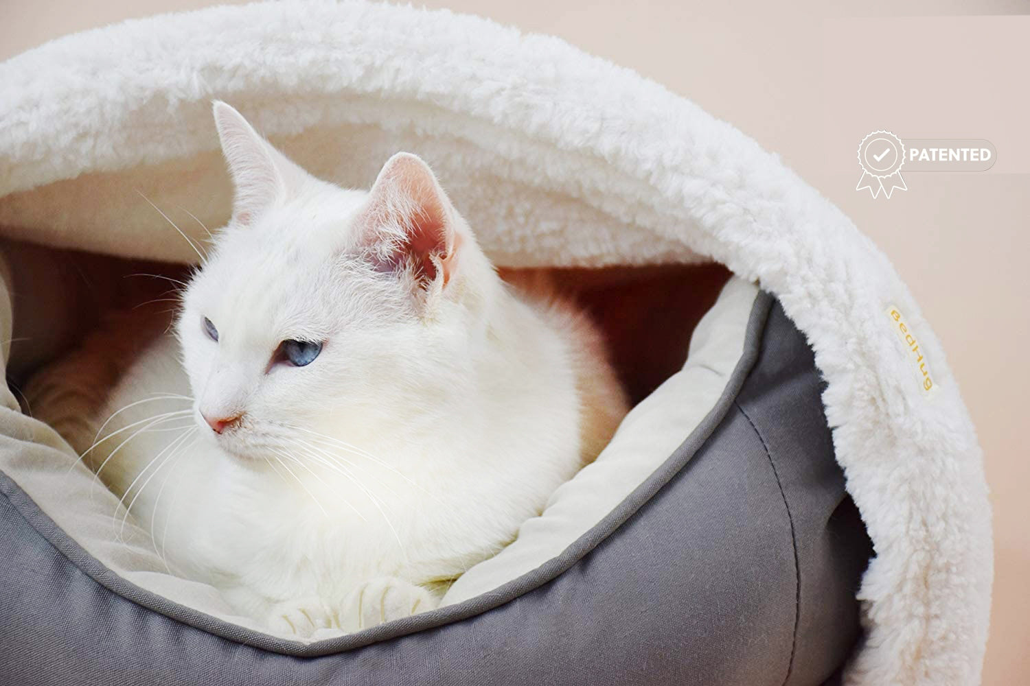 🐶 USE BEDHUG INDEPENDENTLY - Toss your bed aside, and simply wrap the BedHug into a cone-like shape to create the ultimate cave for your pet. For extra comfort, choose the next size up; the extra fabric at the back can be folded on itself to create an even softer base. The tighter you wrap the cone, the less space there is for your pet. Adjust it to your pet's liking until the desired level of coziness is achieved.
